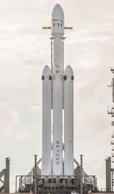 The Falcon Heavy launcher – image from Wikimedia Commons. This launcher could be used to launch a Dragon V2 spacecraft around the Moon