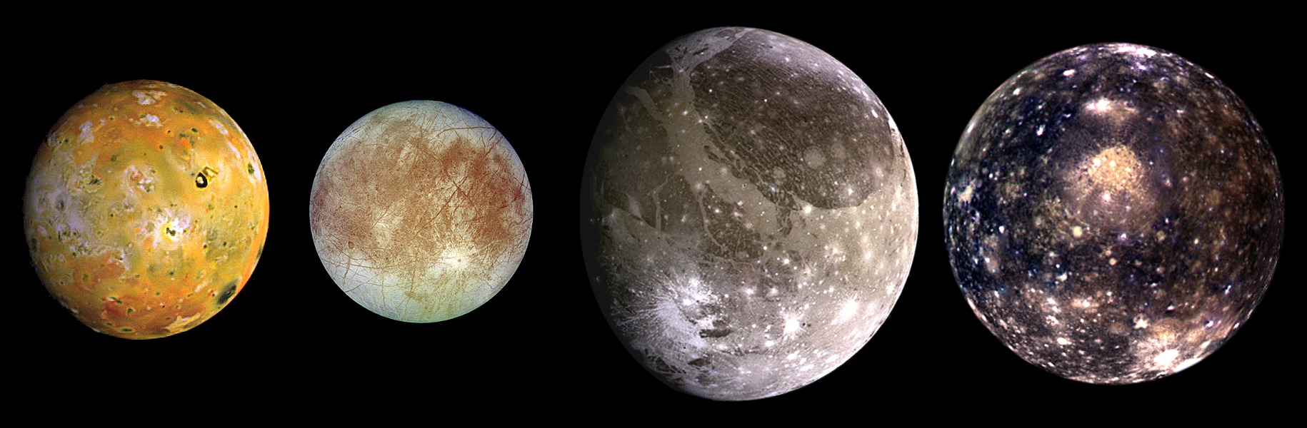 The four large moons of Jupiter: Io, Europa, Ganymede and Callisto -Image credit NASA