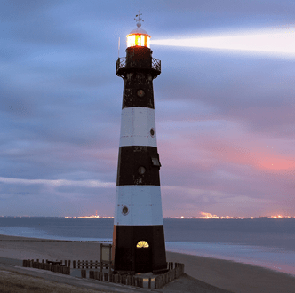 As you can see, the magnetic poles are at an angle to the line through the North and South poles of the pulsar about which it rotates. This means that the cone-shaped beams will rotate around the axis of the pulsar and only when either of the beams is pointing directly at the Earth will it be detected. A pulsar behaves like a lighthouse – the light is on all the time but appears to a viewer to switch on when it is pointing towards them and switch off when it is pointing away.