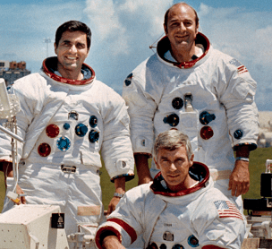 The Apollo 17 crew (L to R) Harrison H. Schmitt, Eugene Cernan, Ronald E. Evans – image from NASA.