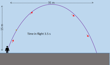 On the Earth, the baseball reaches a height of 15m, travels a distance of 35m and remains in flight for 3.5 seconds  before hitting the ground. For simplicity air resistance has been ignored,
