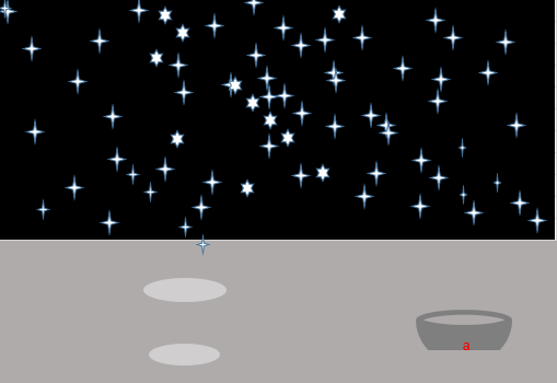 If you could view the sky from the bottom of a deep crater where no sunlight could reach you and you couldn’t see any of the directly lit surface (marked with a small a) you would see thousands of stars in the sky.)