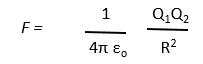 The magnitude of the force F between two electric charges Q1 and Q2 separated by a distance R from each other is given by the expression below.