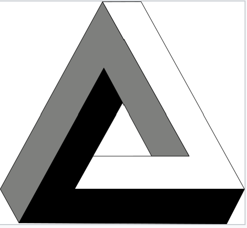 The Penrose Triangle popularised by Roger Penrose and his father the psychologist Lionel Penrose, consists of three beams each of which joins the other two at an angle of ninety degrees. It is not possible to construct such an object in three dimensions although it is possible to draw it  in two dimensions.
