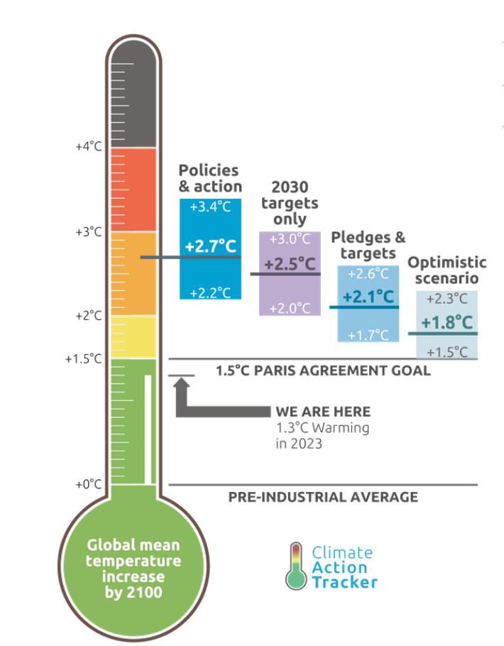 Modelling done by group of scientists who call themselves the Climate Action Tracker concluded that, based upon current behaviour (rather than agreements made at conferences aren’t always stuck to) the likely global temperature rise from pre-industrial levels will be between 2.2oC  and 3.4oC by the end of the century. If this proves to be correct then it would have a massive effect on the Earth’s climate and possibly even humanity itself. A sobering thought!!