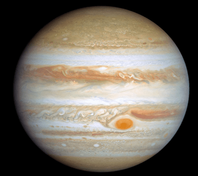 Jupiter’s magnetic field originates from the interior of the planet and, from long term observations of this magnetic field, a rotation period of 9h 55m 29.711s for the interior of the planet has been estimated.