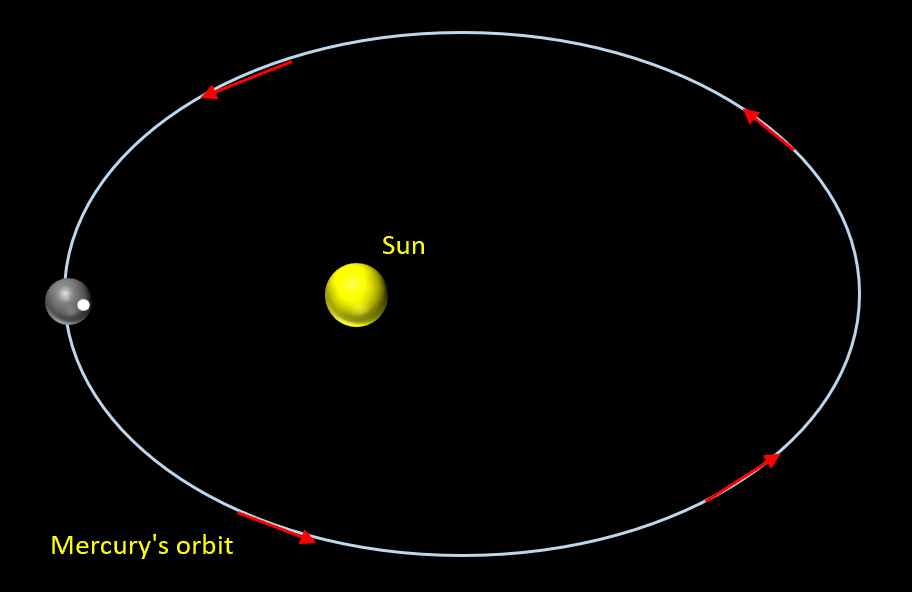 Three complete orbits later, Mercury has rotated on its axis exactly four and a half times. The hot pole is back to its second location and the original hot pole is again on the opposite side of Mercury.