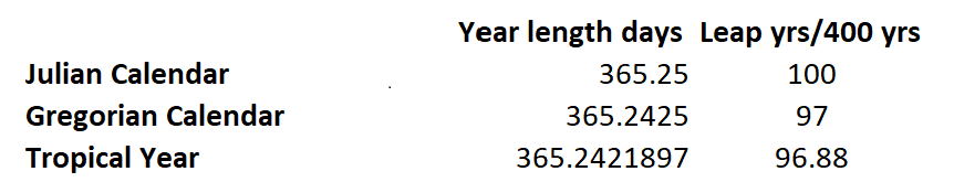 We have to admire the remarkable accuracy of Pope Gregory’s calculations. In the days when the only computational device was the abacus – or the pencil! – the observations & their processing would have been a formidable achievement.
